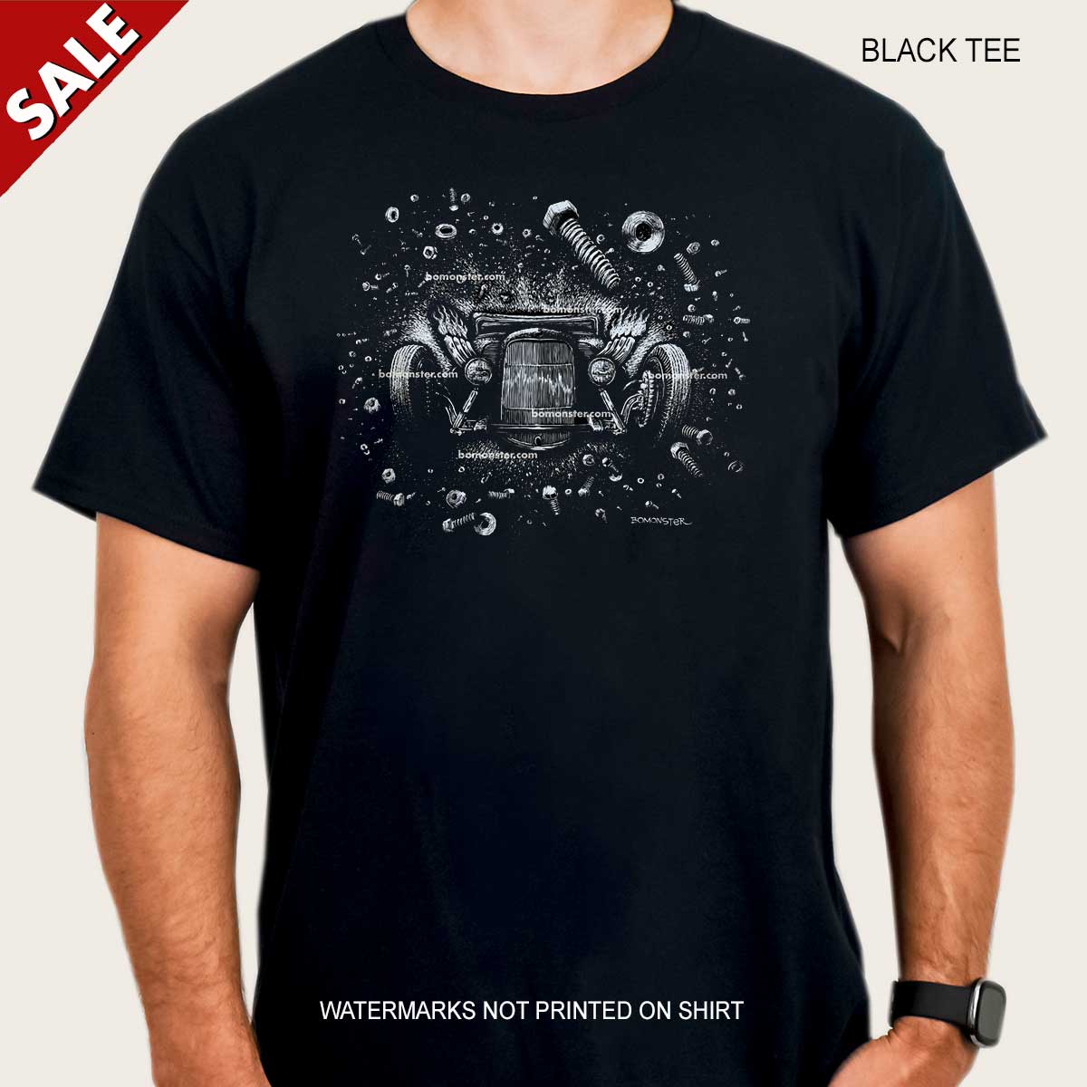 - Hot rod chopped coupe in space surrounded by thousands of loose nuts and bolts