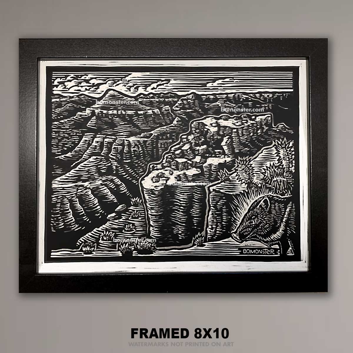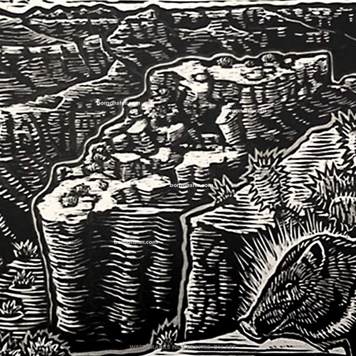 Grand Canyon & Javelina – 8x10 Original Framed BOMONSTER Scratchboard Art