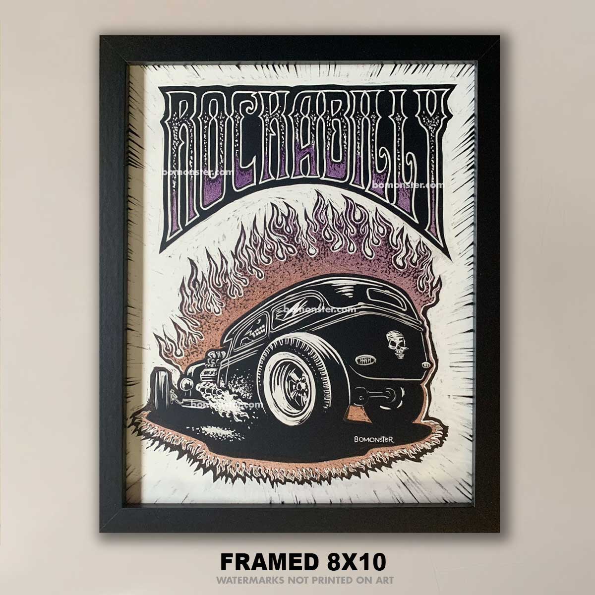 "Rockabilly Hot Rod #1" – Original 8x10 Framed BOMONSTER Scratchboard Hot Rod Artwork (One-of-One)