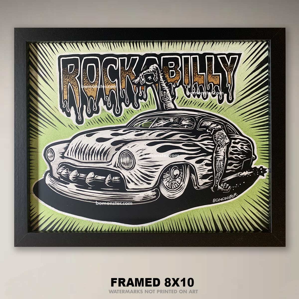 Collectors of rockabilly wall art will dig this 8"x10" BOMONSTER original art.